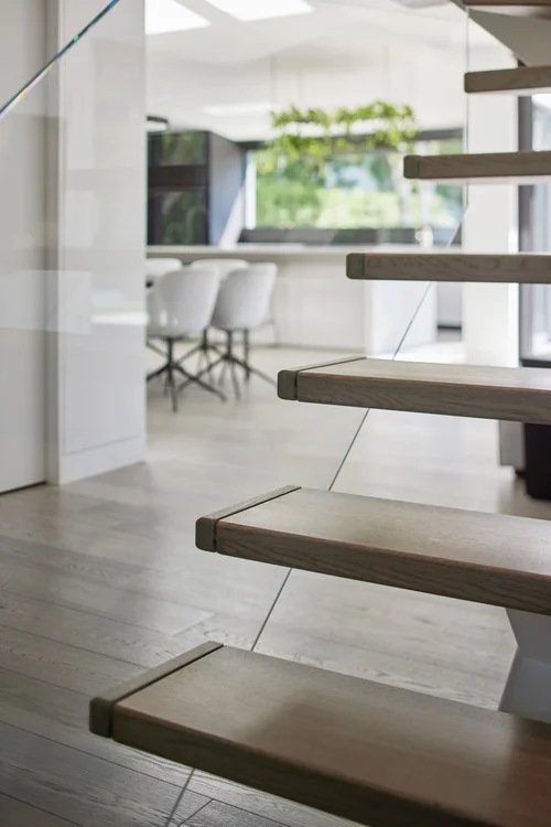 Inspired by a natural palette, the interior and exterior materials of the home are neutral and were chosen simultaneously for their inherent natural textures and relationship with the exterior environment. This intrinsic balance is evident between the exterior’s charcoal stone, black matte metal and cedar cladding, and the interior’s organic finishes. Refined materials including glass, metal and wood were carefully selected with the intention of creating a cohesive connection between the exterior and interior.